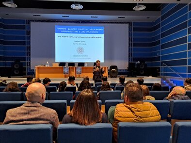 Among the speakers, G. Varvaro led through us the revolution of magnetic materials, while S. Autellitano offered a reflection on the scientific reconstruction of the Riace Bronzes, symbol of the dialogue between art and science. Added to this are two scientific aperitifs, the first, with the photographer E. Sacchetti, presented his photographic exhibition ‘Beyond the Visible Images from the Heart of the LHC’, while the second will be in collaboration with the University of the Third Age.