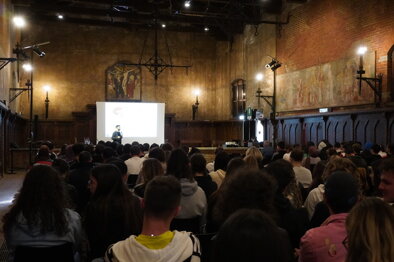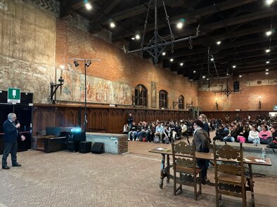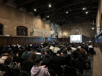 "Science in Movement" was the theme of a series of free activities aimed at a heterogeneous audience and school students. C. Fasolato, guided us in the vision of science as a vibrant movement of people, a continuous exchange of ideas that goes beyond the barriers of personal beliefs, while the friends of Non è la Zebra revealed why we often prefer reassuring explanations to more complex and uncertain: a compelling analysis of the psychology of our choices. M. Ruspa led us into the world of radiation and their interaction with living matter, explaining how they can be used for diagnostic and therapeutic purposes, while S. Carniel and A. Benedetti addressed the theme of the rising sea, exploring the challenges that threaten coasts and coastal populations, proposing innovative solutions to adapt to this phenomenon. While S. Sanna illustrated the properties that emerge when many elements interact with each other (collective phenomena), P. Gallina focused on the new art forms generated by the synergy between robotic technology and human expression.