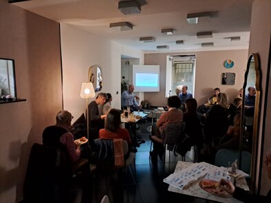 The two scientific evening aperitifs of the festival addressed the theme of conspiracies at the table, exploring the influence of cognitive biases in food choices (L. Gagliardi and G. Durante of Non è la Zebra), and of the "rising sea", thematic dedicated to the impacts of disturbances and melting of polar ice on climate change (S. Carniel and A. Benedetti).